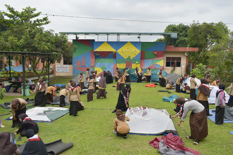 Setelah seluruh siswa mendapat arahan terkait pemasangan tenda, selanjutnya masing-masing kelompok bertanggung jawab memasang tendanya di area lapangan bola (Putra) dan area Wall Climbing Darul Ilmi Murni (Putri).